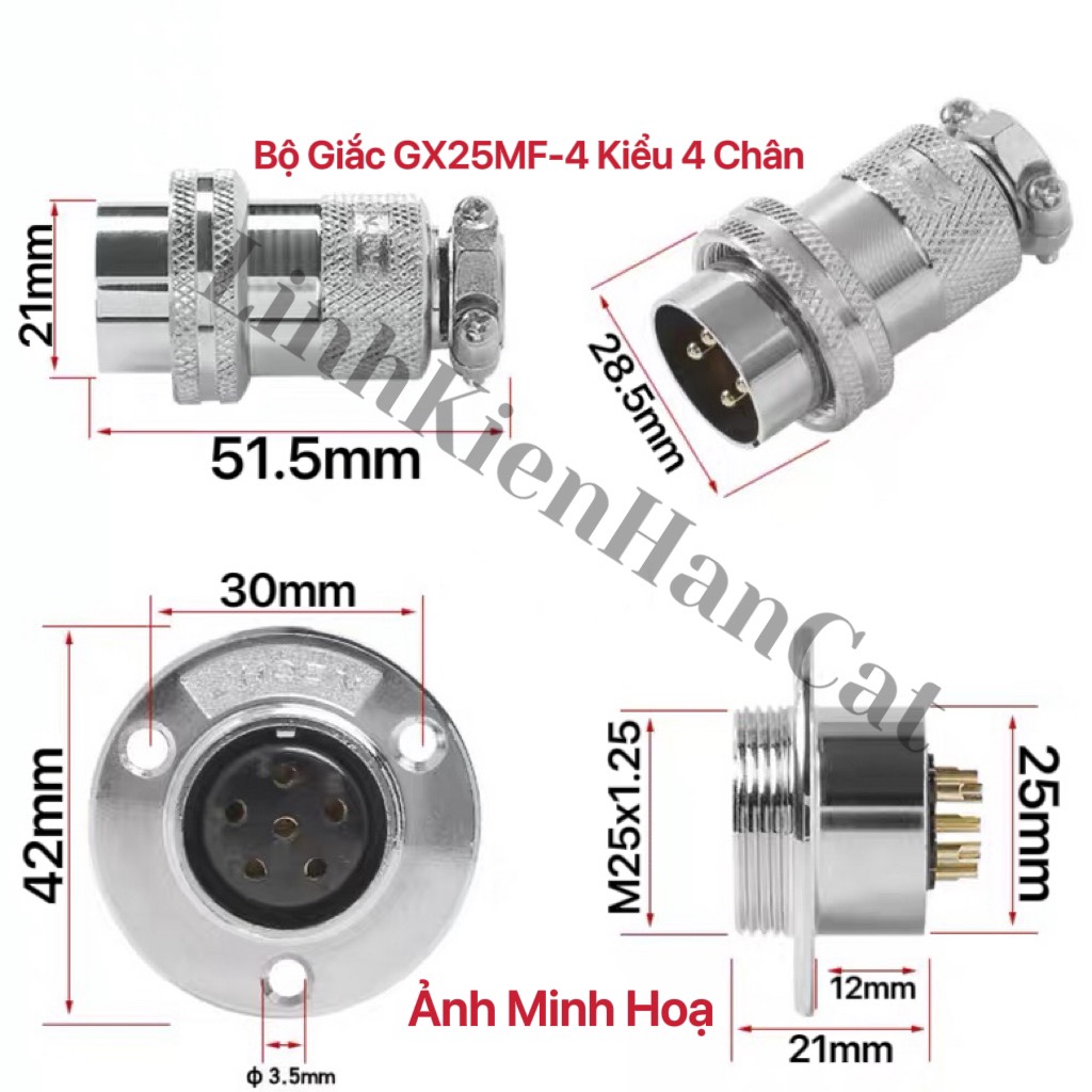 Bộ Giắc GX25MF-4 Kiểu 4 Chân