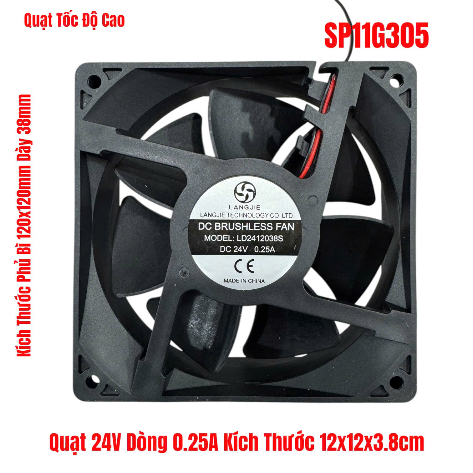 Quạt 24V Dòng 0.25A Kích Thước 12x12x3.8cm