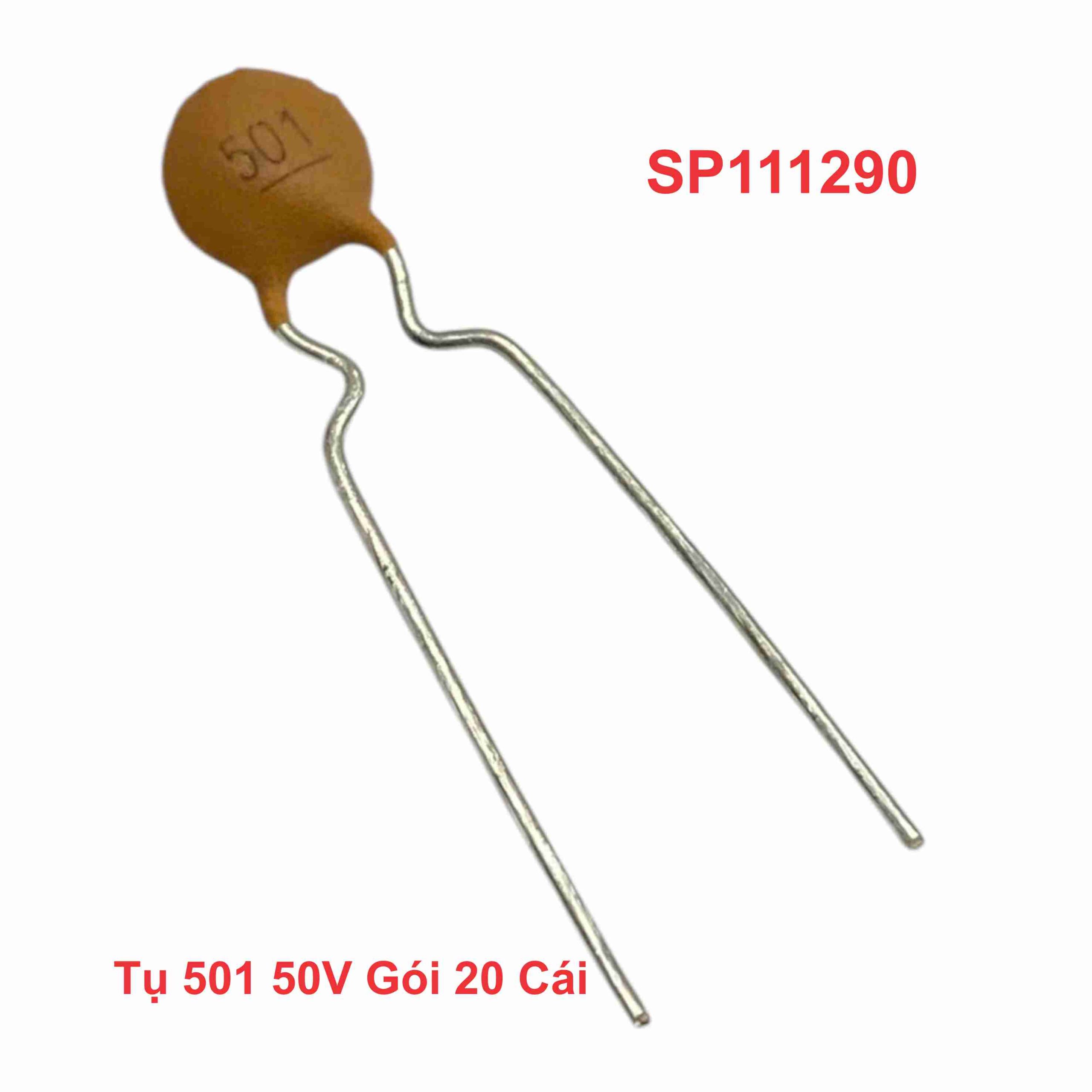 – Tụ 501 50V Gói 20 Cái có thể là thông tin về một loại tụ điện, cụ thể là tụ điện có thông số sau: